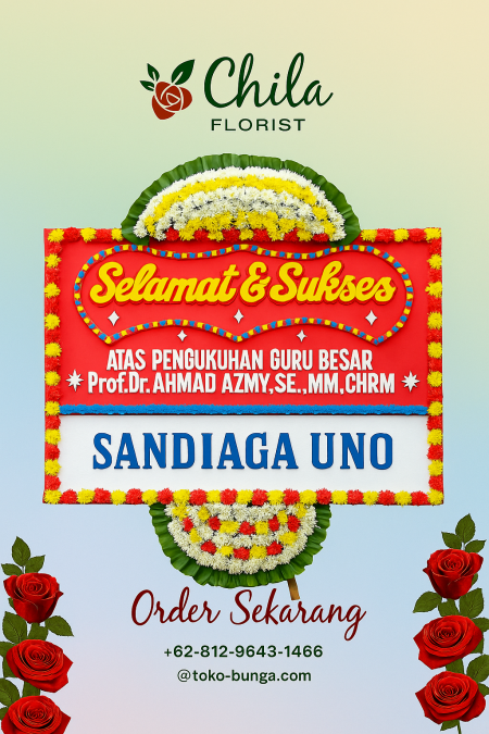 Rayakan momen bahagia dengan papan bunga wedding bertema modern atau klasik. Cocok untuk ucapan selamat kepada mempelai di gedung resepsi, ballroom, atau halaman rumah.